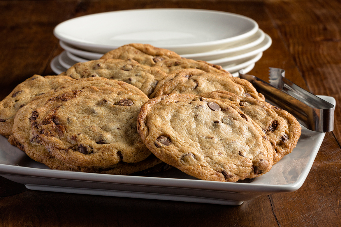 Twelve melt-in-your-mouth chocolate chip cookies.