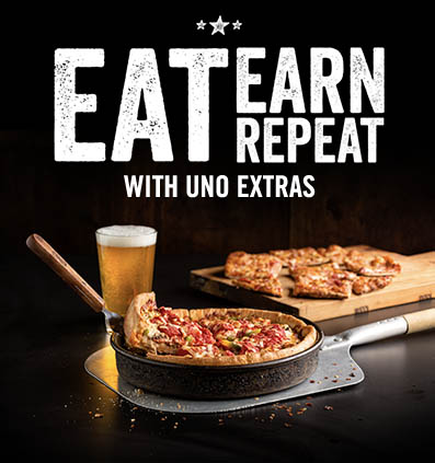 *introductory reward is a free individual pizza with any purchase; may not be redeemed on date of sign-up; reward will appear in account within 24 hours of registering with UNO Extras